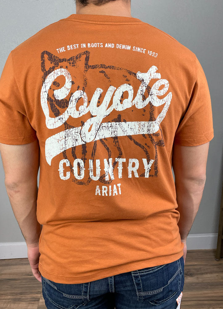 Show off rugged western style with this Ariat ‘Coyote Country' graphic tee. Its bold vintage-distressed print and warm rust color make it a perfect everyday shirt for anyone who loves the outdoors.