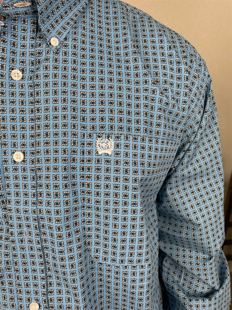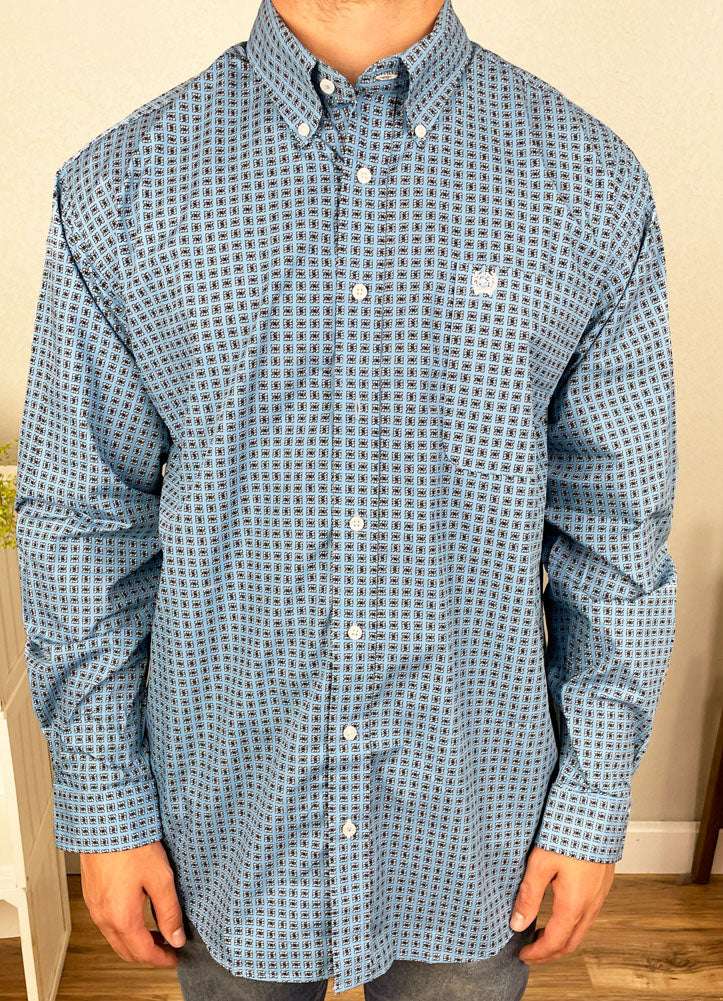 LS Print Button Up in Blue by Cinch