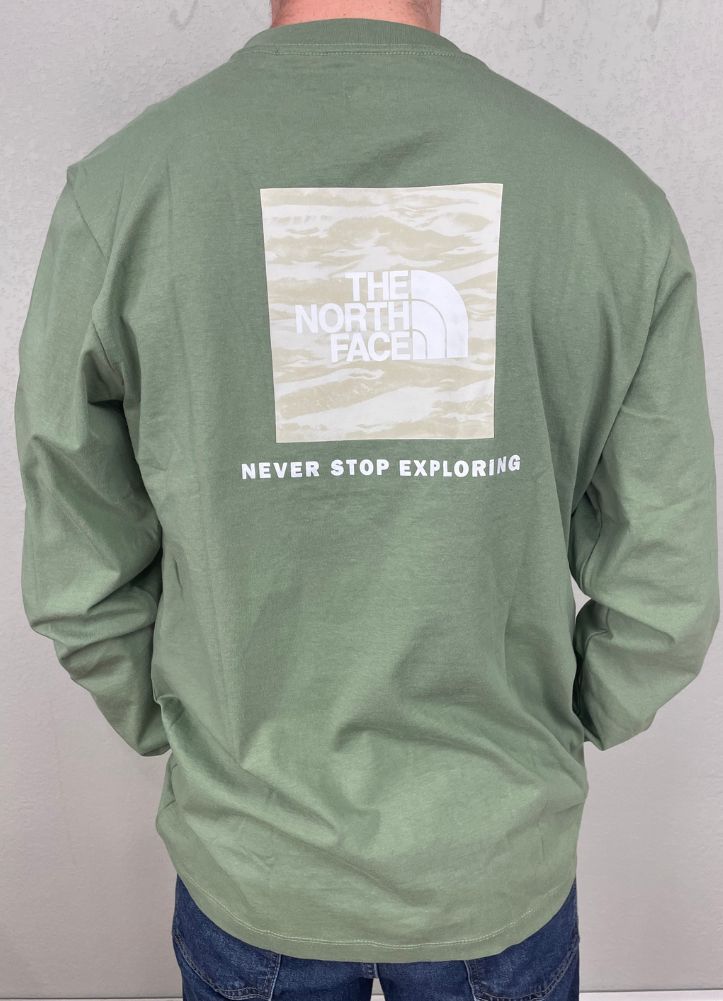 Keep it simple, comfortable, and effortlessly stylish with The North Face long-sleeve tee in soft sage green. Crafted from lightweight, breathable cotton, this shirt delivers all day comfort with a relaxed fit that's perfect for layering or wearing on its own. The ribbed crew neckline and cuffs add structure, while the signature North Face logo on the chest provides a clean, iconic touch. Ideal for casual outings, weekend adventures, or everyday wear, this versatile long sleeve balances functionality and laid back style. Pair it with jeans, joggers, or shorts for a timeless, go anywhere look that never compromises on comfort or quality.