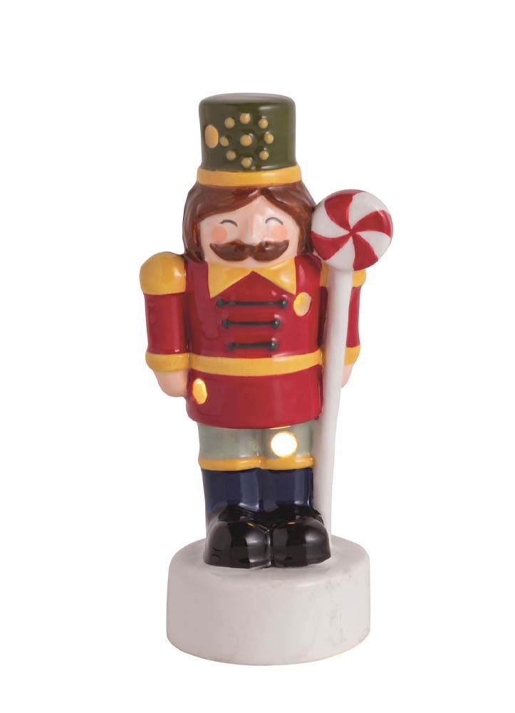 Add festive fun to your holiday décor with this charming light-up ceramic nutcracker, featuring bright colors, whimsical details, and warm LED accents. Perfect for mantels, shelves, or tabletop displays throughout the Christmas season.