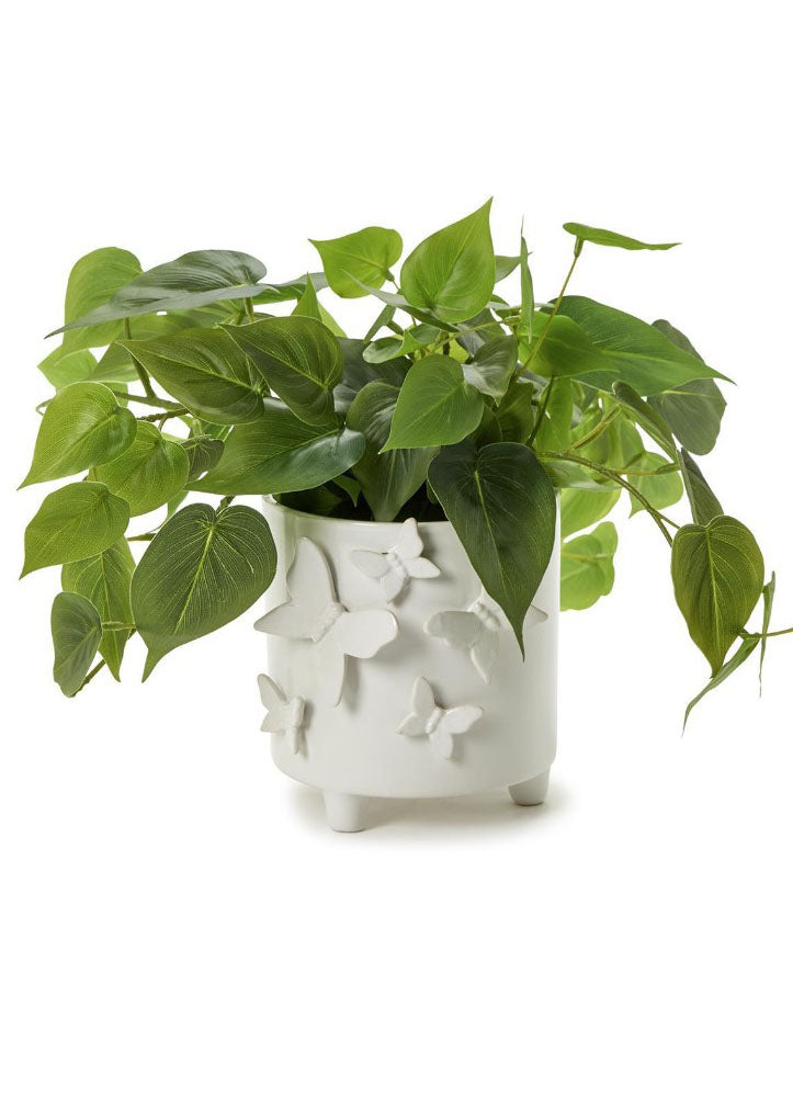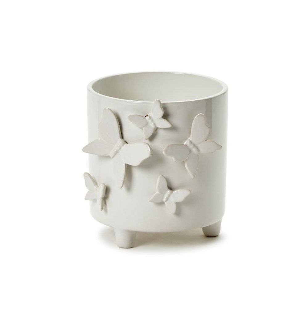 Crafted from ceramic, this cachepot features sculpted butterflies that add a whimsical touch to your decor. Perfect for showcasing small plants or blooming flowers, elevate your home dècor with this charming and functional piece.