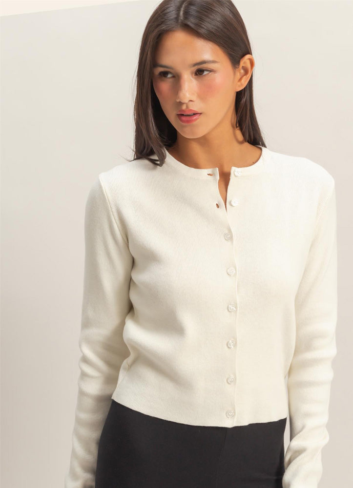 Ribbed Button Up Cardigan in Cream by Hyfve