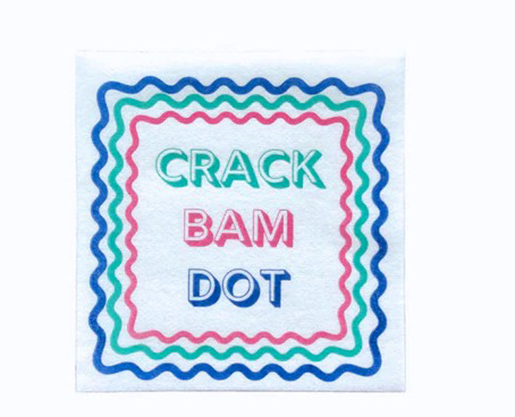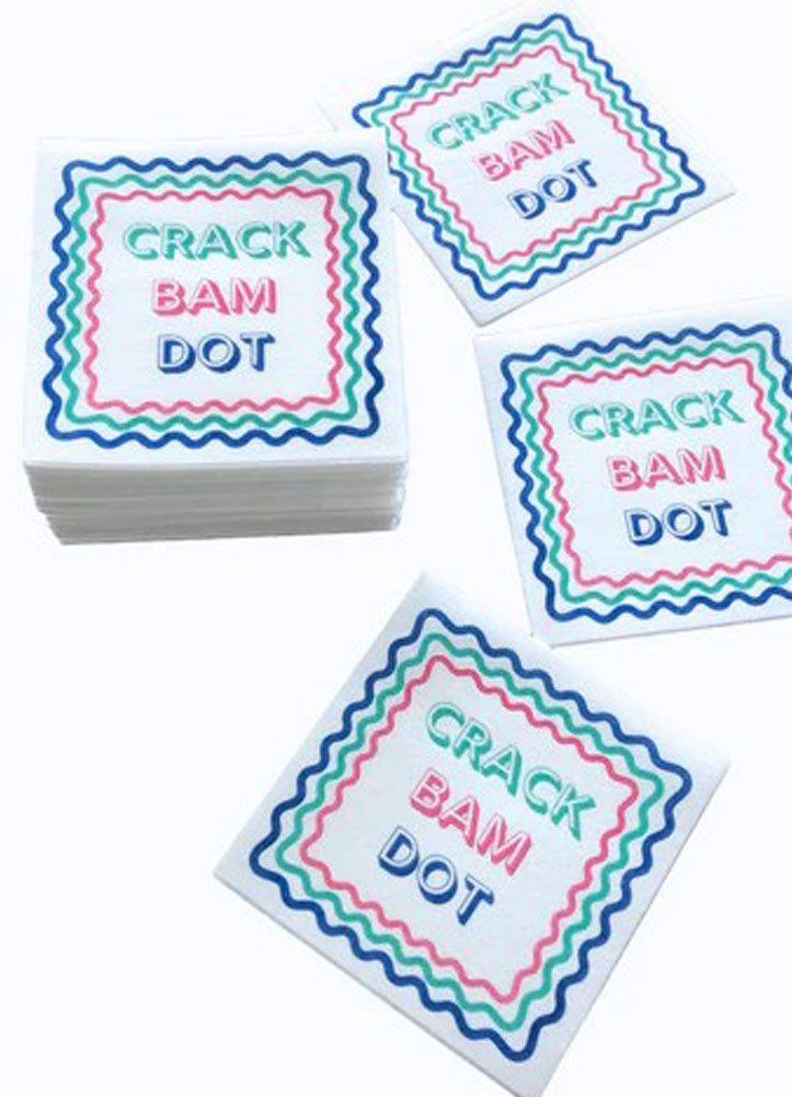 Add a playful touch to your gatherings with these fun and festive cocktail napkins. Featuring the bold phrase “Crack Bam Dot” in colorful lettering, they are perfect for Mahjong nights, parties, or casual entertaining. Made from soft, absorbent paper, these napkins are both practical and decorative, helping keep hands and surfaces clean while enhancing your table décor. Ideal for serving drinks or small bites, they make a great conversation starter and a charming addition to any game night or celebration.