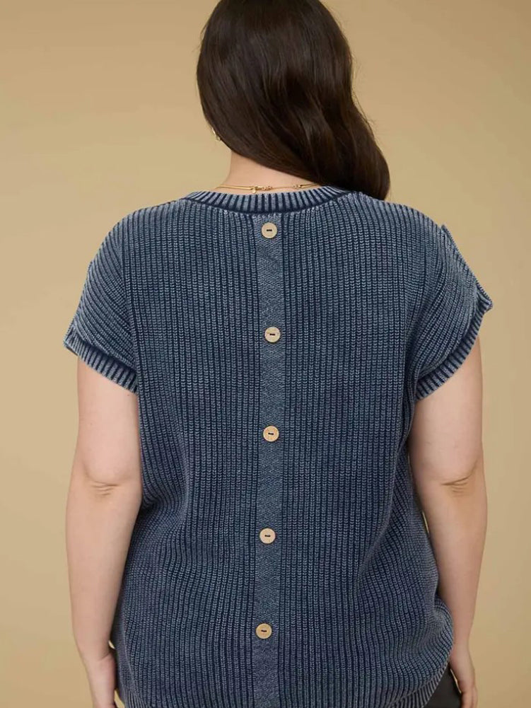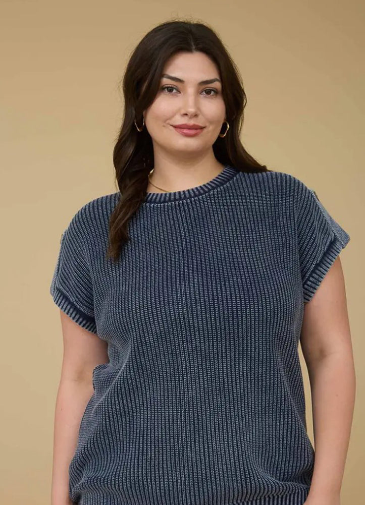 Plus Washed Knit SS Pullover Sweater in Charcoal by Blu Pepper