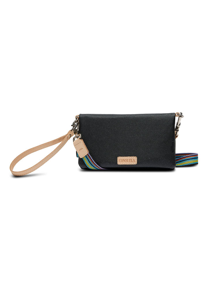 Stay organized in style with this versatile Consuela wristlet, featuring a sleek black exterior, colorful card slots, ID window, and zippered compartments for everyday essentials.