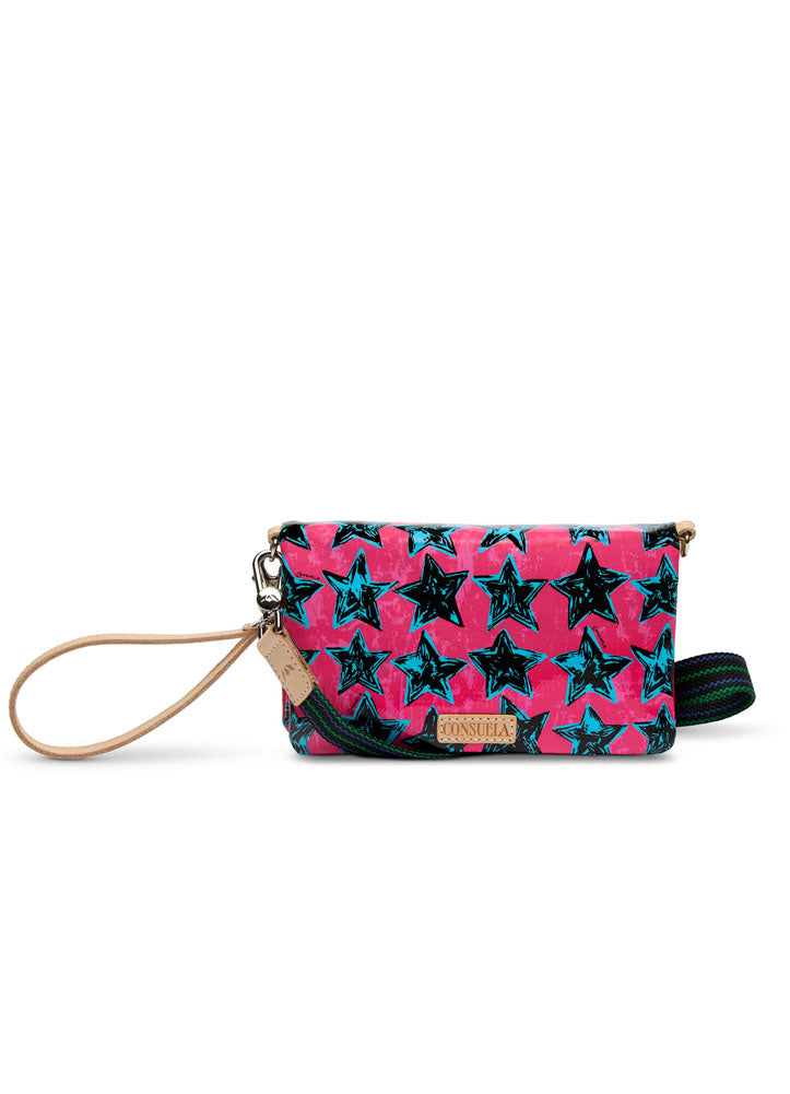 Add a pop of personality with this Consuela wristlet wallet, featuring bold star prints, multiple card slots, zippered storage, and a detachable strap for everyday ease.