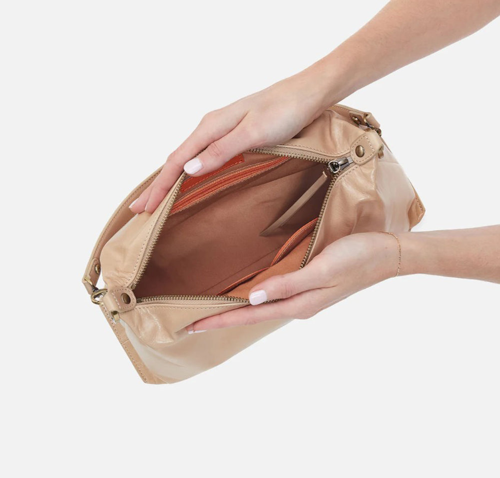 With two interchangeable straps, the Avon bag in Sand by Hobo will make the perfect crossbody or shoulder bag. This bag features a leather exterior, interior pockets, exterior phone pocket and a top zip closure.