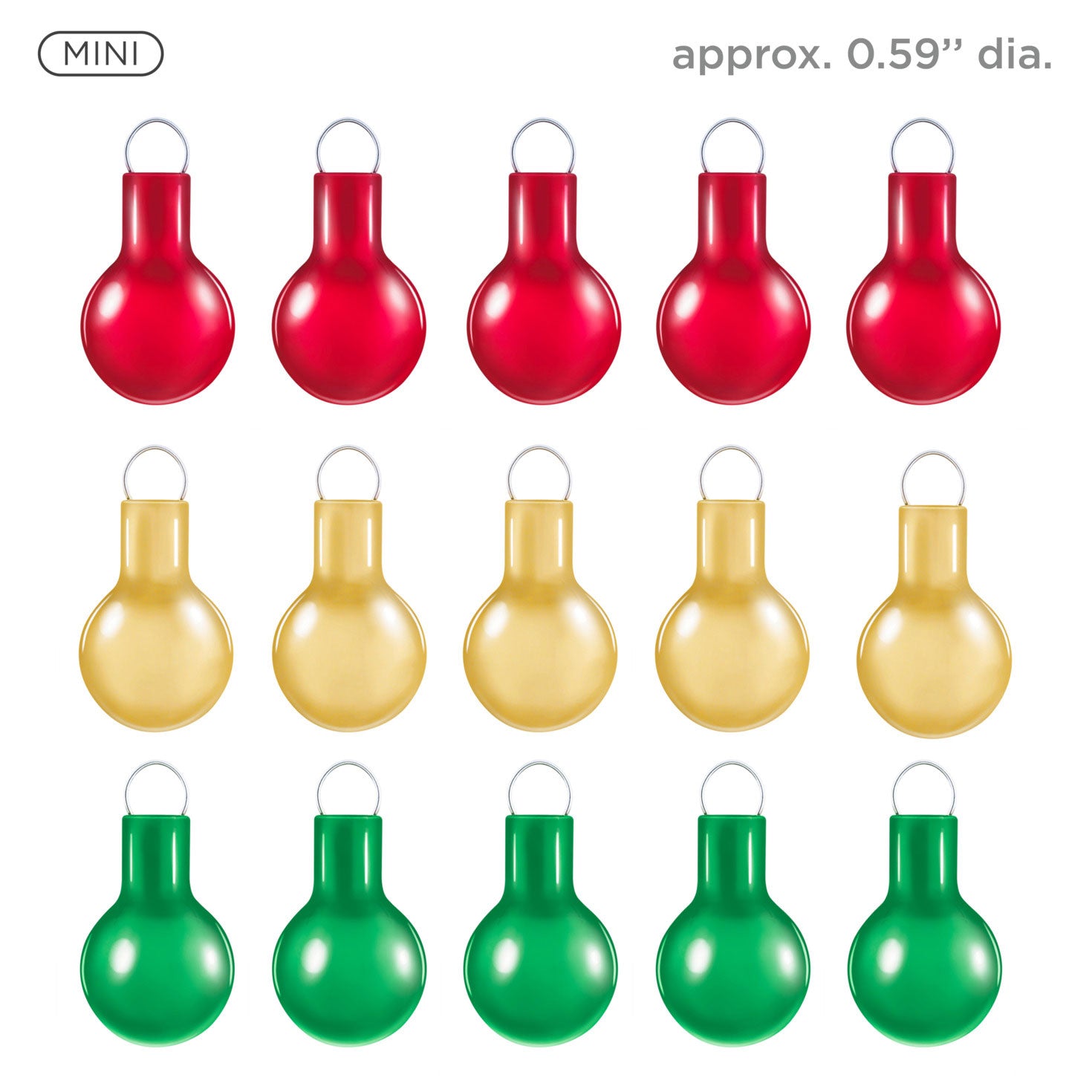 Decorate a wreath or mini tree—or fill empty spaces on your full-size Christmas tree—with the classic appeal of glass ball ornaments. This beautiful set features 15 miniature Christmas tree ornaments, including 5 each of red, green and gold with shiny metallic finishes.