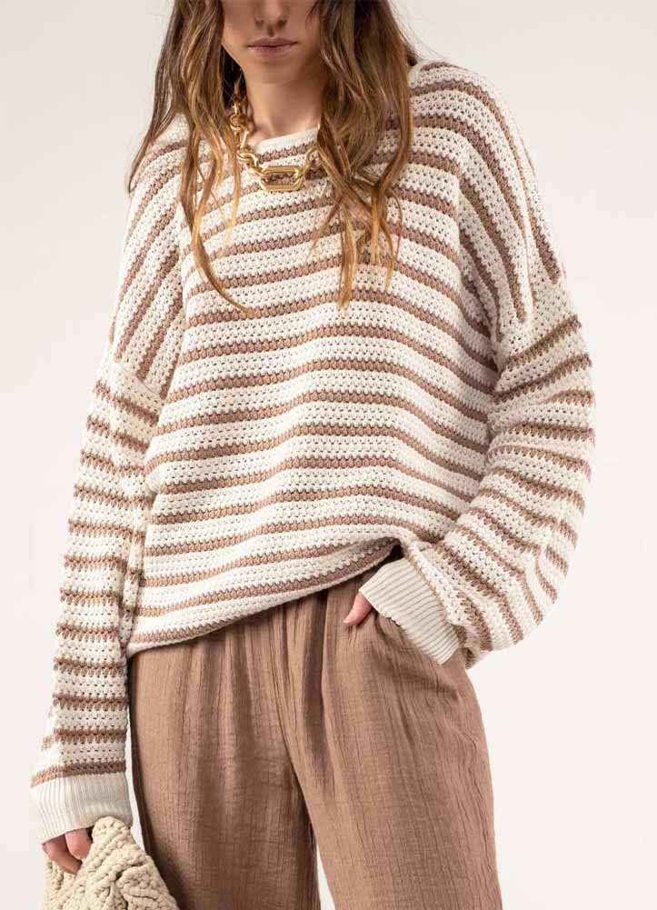 Stripe Knit Sweater in Taupe by Blu Pepper