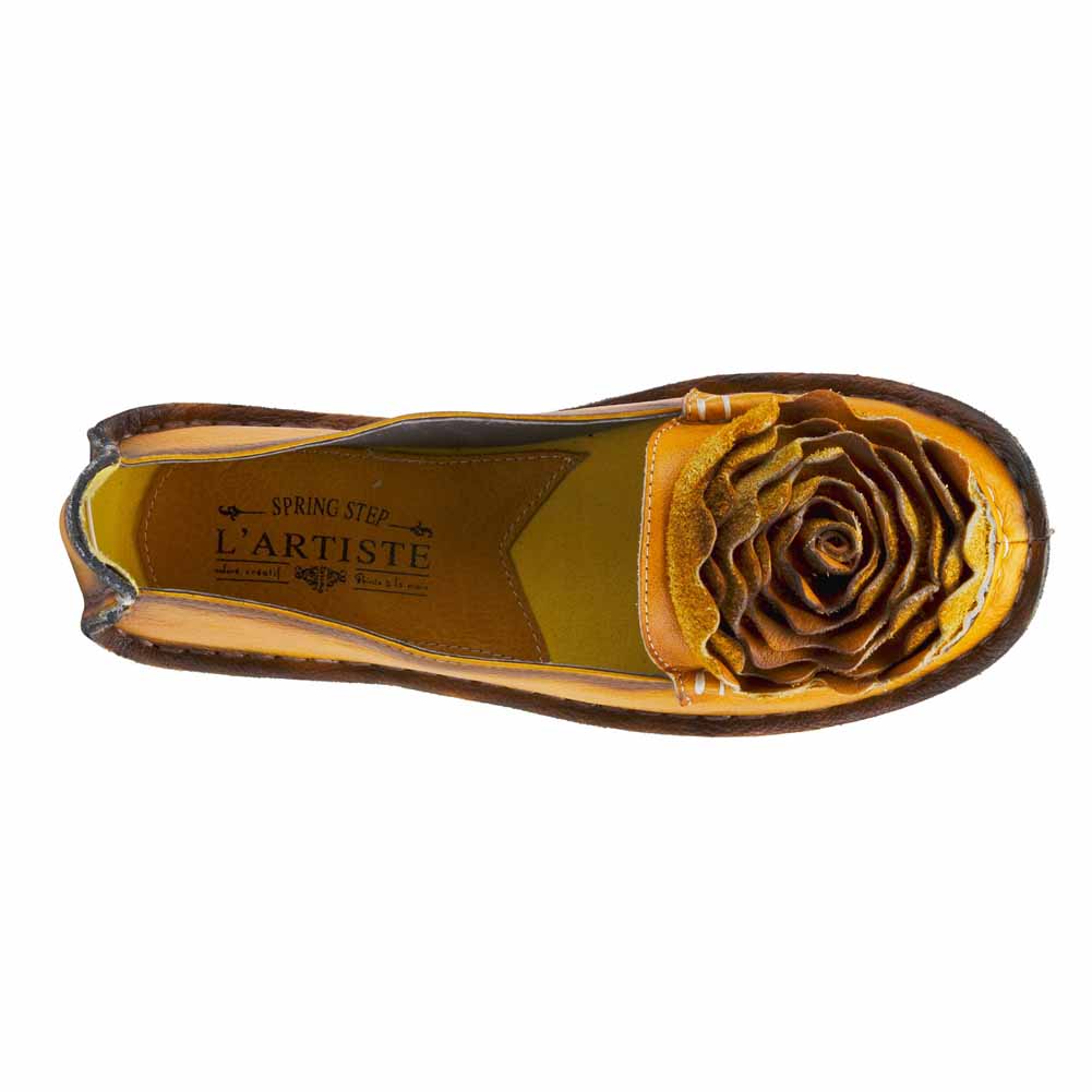 L'Artiste has brought us this new Dezi shoe in the color yellow. The toe of the shoe is made to look like a flower to give it extra character! This shoe also has a higher heel to keep your foot in place.