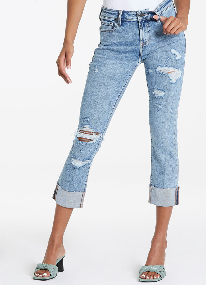 Dear John has brought us this new Blaire cuffed pant in Glass Beach. This pant has a classic 5-pocket design and distressing on both legs. This pant looks great with sandals or sneakers.