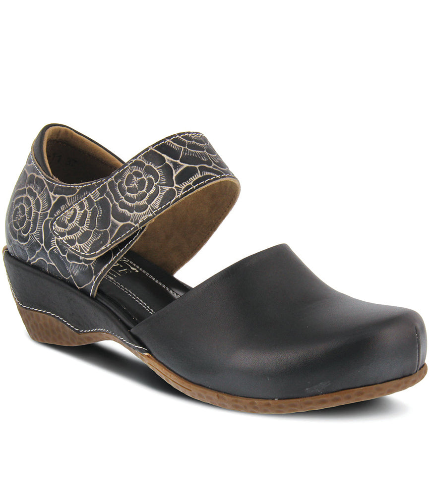 We are loving these shoes from the brand L'Artiste. These came in the color black, these shoes feature a heel, a design on the strap and back of the shoe and also a covered toe!