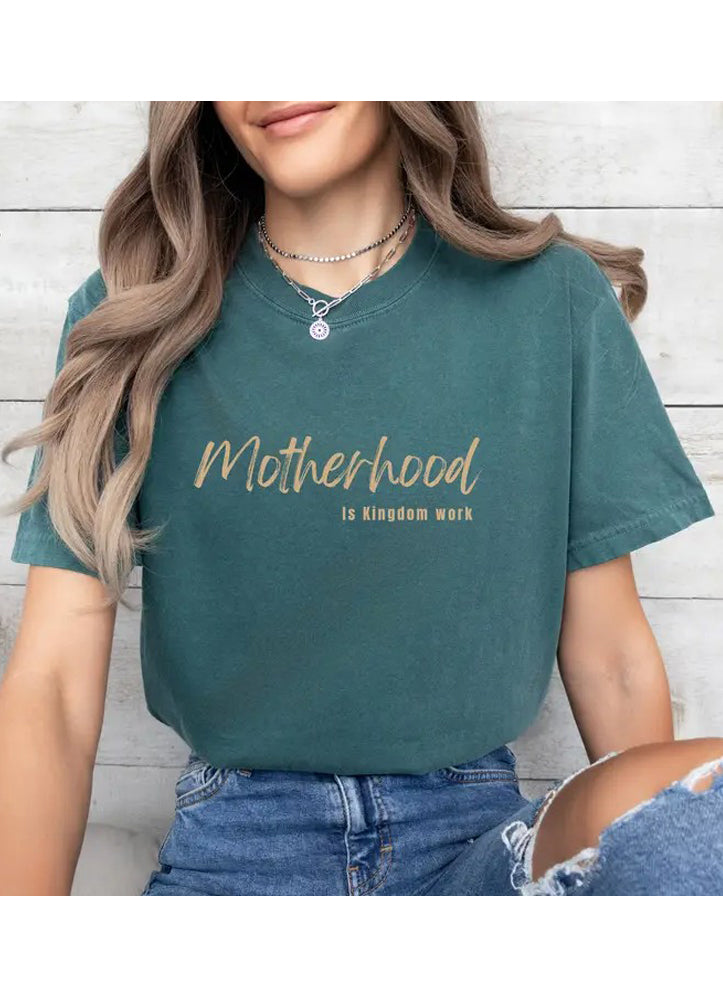Celebrate the calling of motherhood with our Proverbs Blue T-Shirt, crafted from soft, breathable cotton for all-day comfort. Featuring "Motherhood is Kingdom work" on the front and an inspiring Proverbs 22:6 verse on the back, this tee beautifully blends style and faith. Its relaxed fit and timeless crewneck design make it perfect for casual wear, while its message serves as a daily reminder of purpose and love.