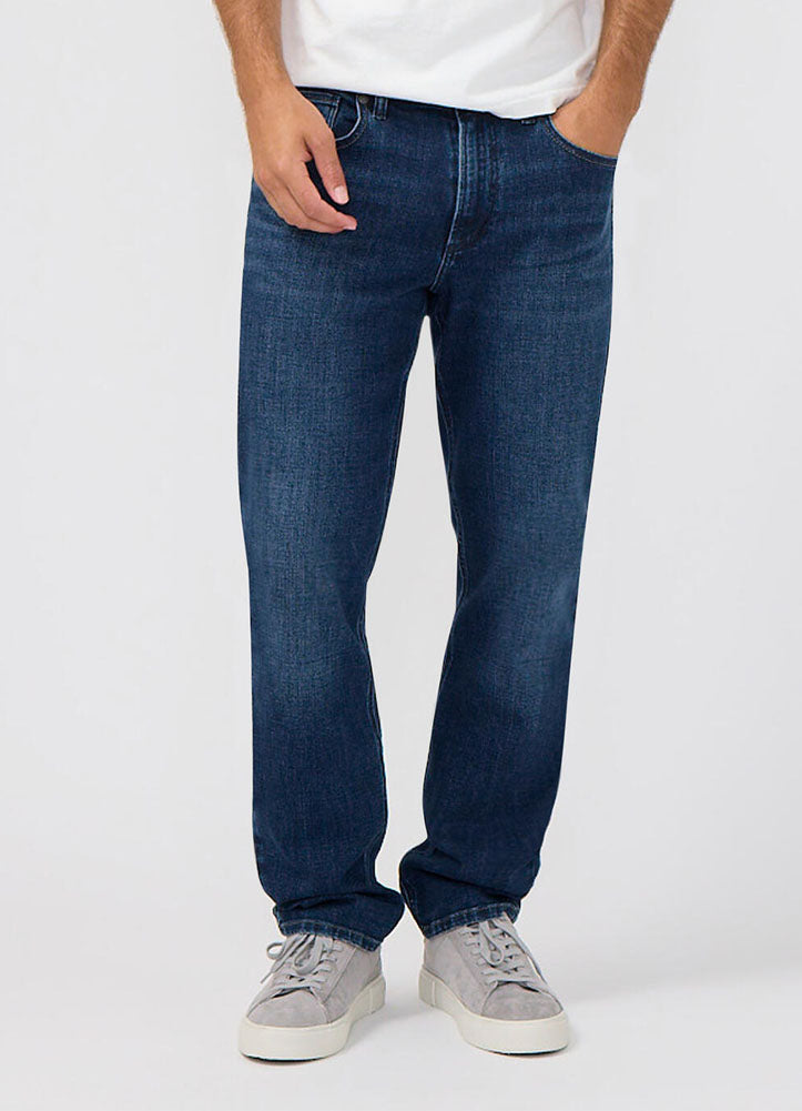 These modern men's jeans feature a clean dark-wash finish and a comfortable straight-leg fit, offering effortless versatility that pairs perfectly with casual sneakers, everyday tees, and laid-back weekend looks.
