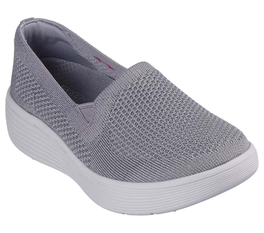 All-day comfort meets sleek style in these Skechers slip-on shoes, featuring a breathable mesh upper and cushioned platform sole that offers support with every step—perfect for errands, travel, or daily wear.