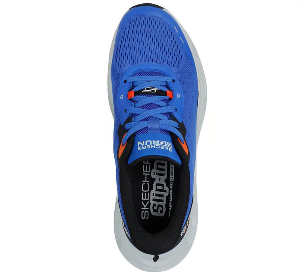 Max Cushioning Glide Step Advert in Blue/Orange by Skechers