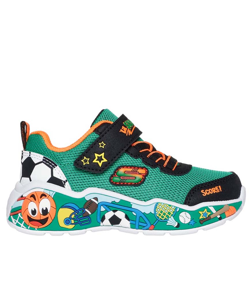 Score big in style with these playful Skechers kids' sneakers, featuring sporty graphics, bold colors, and comfy cushioning—perfect for active little athletes ready to play all day long!