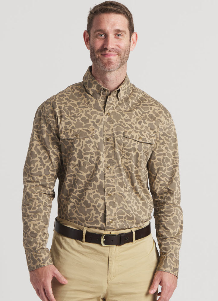 Add rugged style to your everyday wardrobe with this versatile patterned button-down shirt. Designed with a durable yet comfortable fabric, it features an allover camo-inspired print, classic collar, and functional chest pockets for a refined outdoor look. Perfect for casual Fridays, weekend adventures, or relaxed evenings, this shirt pairs easily with jeans or chinos for effortless, confident style.