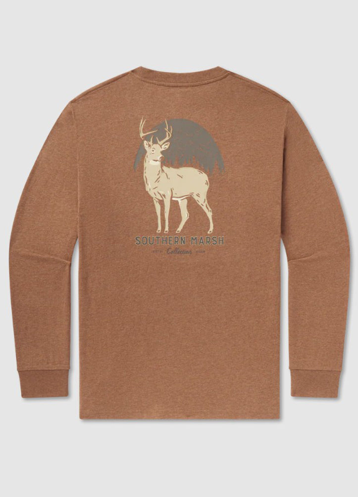 Perfect for cooler days, this Southern Marsh long-sleeve tee showcases a striking deer graphic on soft cotton, blending outdoor heritage with everyday comfort.