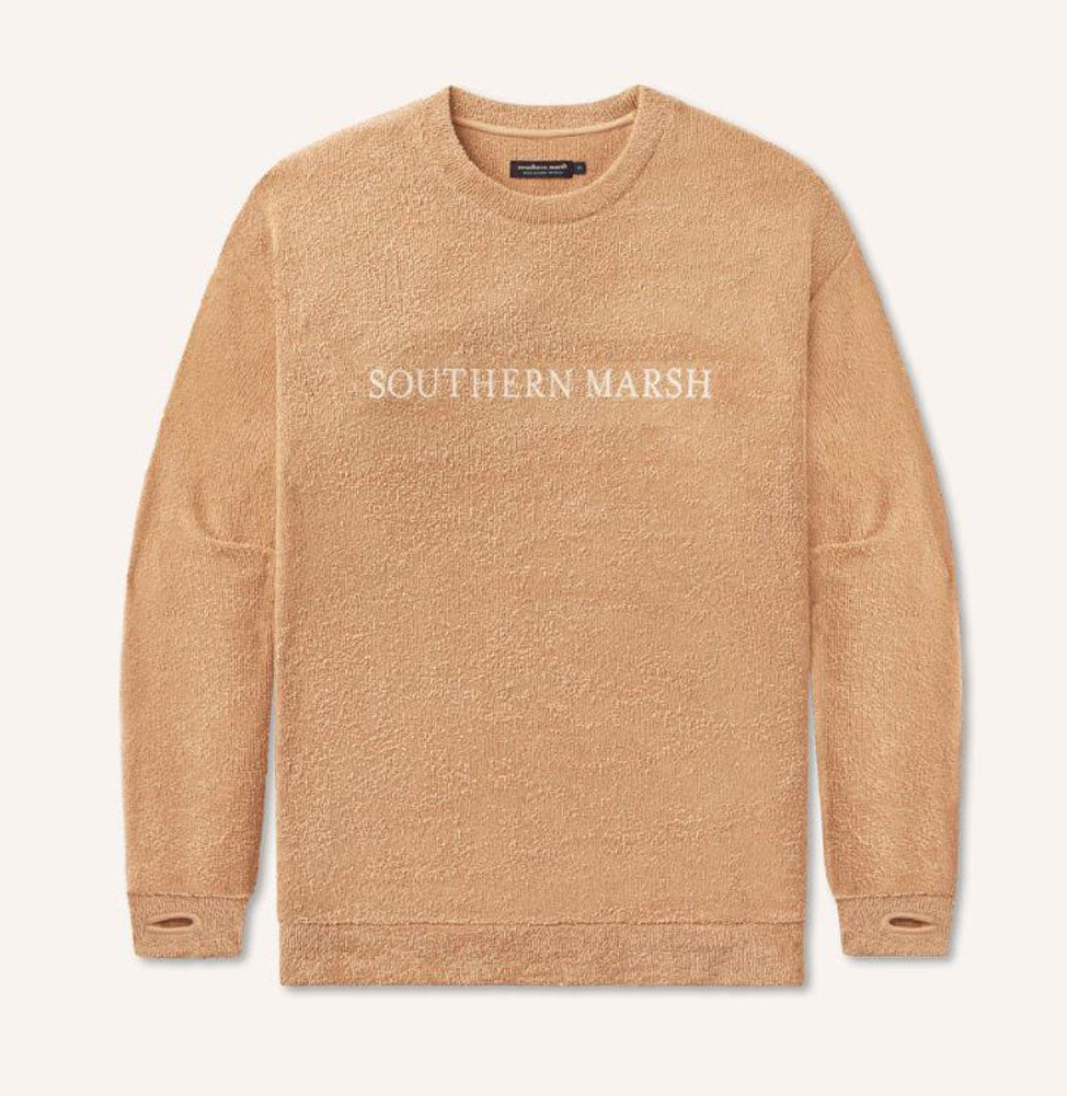Wrap yourself in effortless comfort with the Southern Marsh crewneck sweatshirt. Designed in a warm camel hue, this cozy pullover is crafted from ultra-soft fabric that feels as good as it looks. Featuring a relaxed fit with long sleeves and ribbed detailing, it delivers the perfect balance of casual style and everyday ease. The bold “Southern Marsh” logo across the chest adds a signature touch, making it a standout staple for any wardrobe. Ideal for layering on chilly mornings or wearing solo for laid back days, this sweatshirt is the perfect blend of comfort, style, and Southern charm.