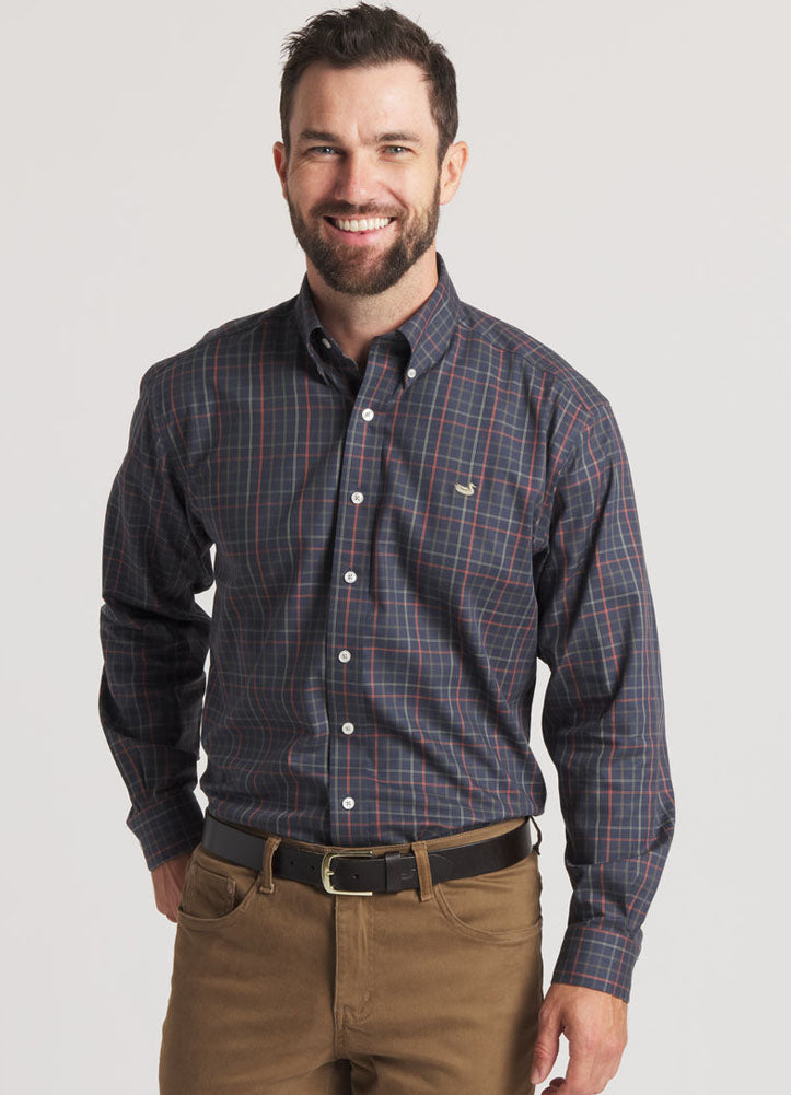 Chateau Windowpane Dress Shirt in Navy/Dark Olive by Southern Marsh