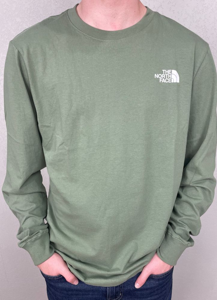 Keep it simple, comfortable, and effortlessly stylish with The North Face long-sleeve tee in soft sage green. Crafted from lightweight, breathable cotton, this shirt delivers all day comfort with a relaxed fit that's perfect for layering or wearing on its own. The ribbed crew neckline and cuffs add structure, while the signature North Face logo on the chest provides a clean, iconic touch. Ideal for casual outings, weekend adventures, or everyday wear, this versatile long sleeve balances functionality and laid back style. Pair it with jeans, joggers, or shorts for a timeless, go anywhere look that never compromises on comfort or quality.