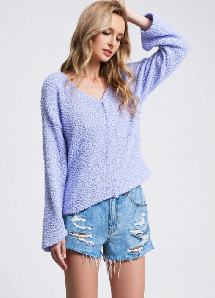 Solid Soft Knit Cozy Sweater in Blue by Very J