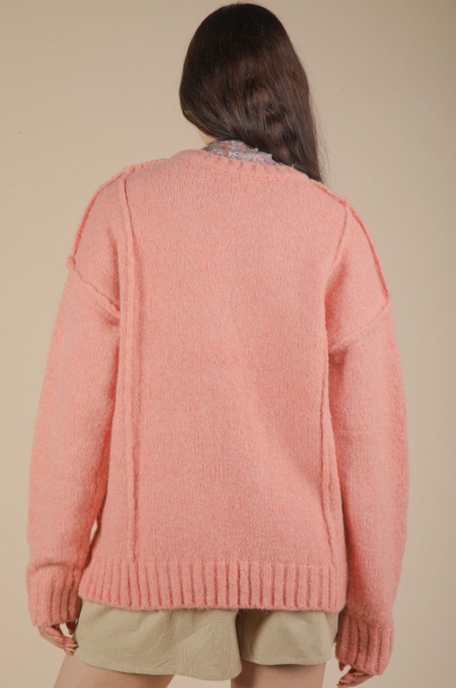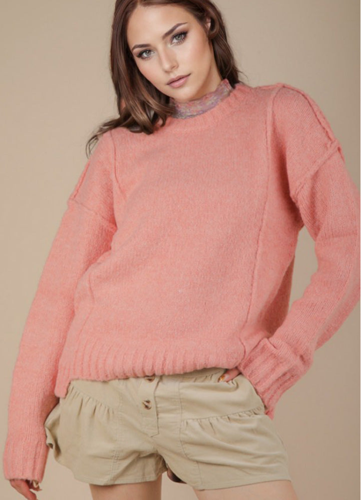 Easy comfort with a cozy touch. This lightweight knit sweater features a relaxed fit and a warm pink hue that's perfect for layering or wearing on its own for effortless everyday style.
