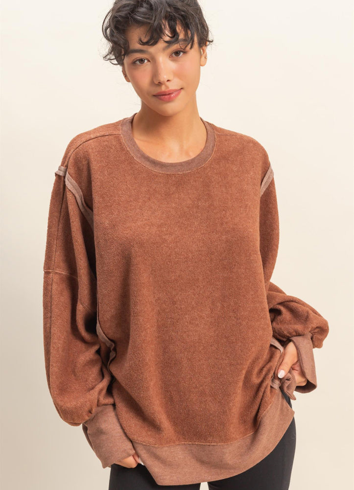 Oversized Casual Sweatshirt in Chestnut by Hyfve
