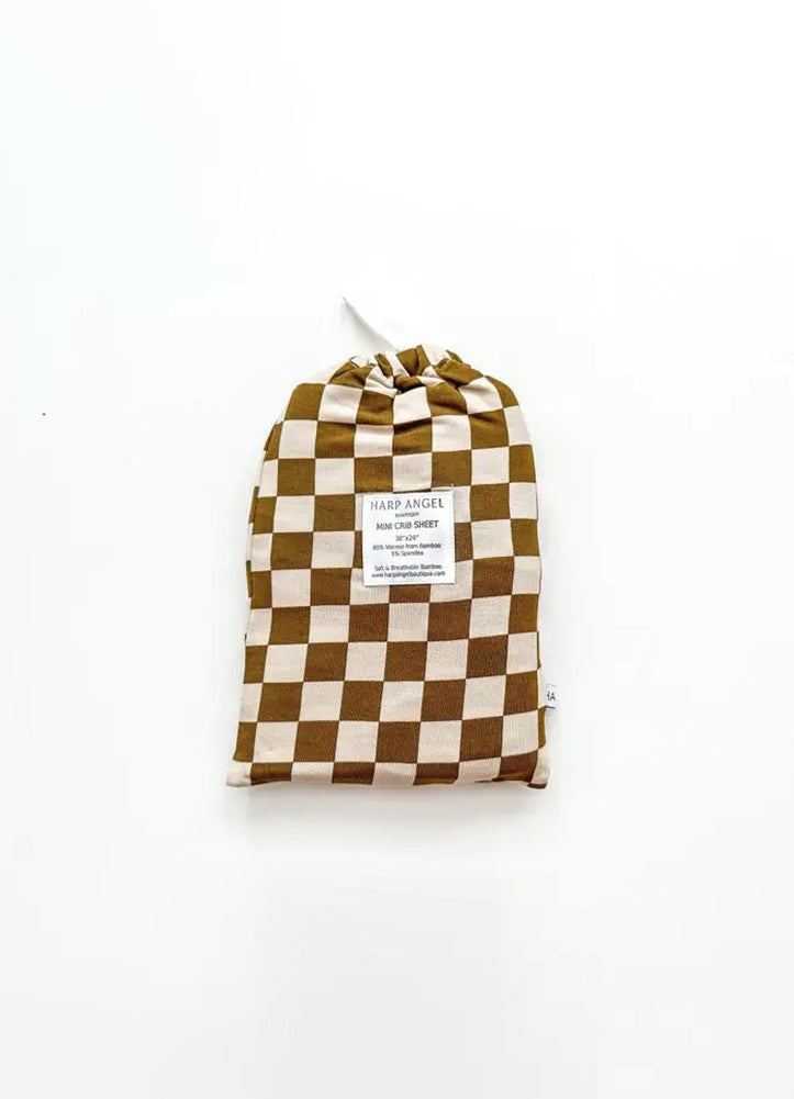 Toffee Checkered Bamboo Fitted Crib Sheet by Harp Angel Boutique