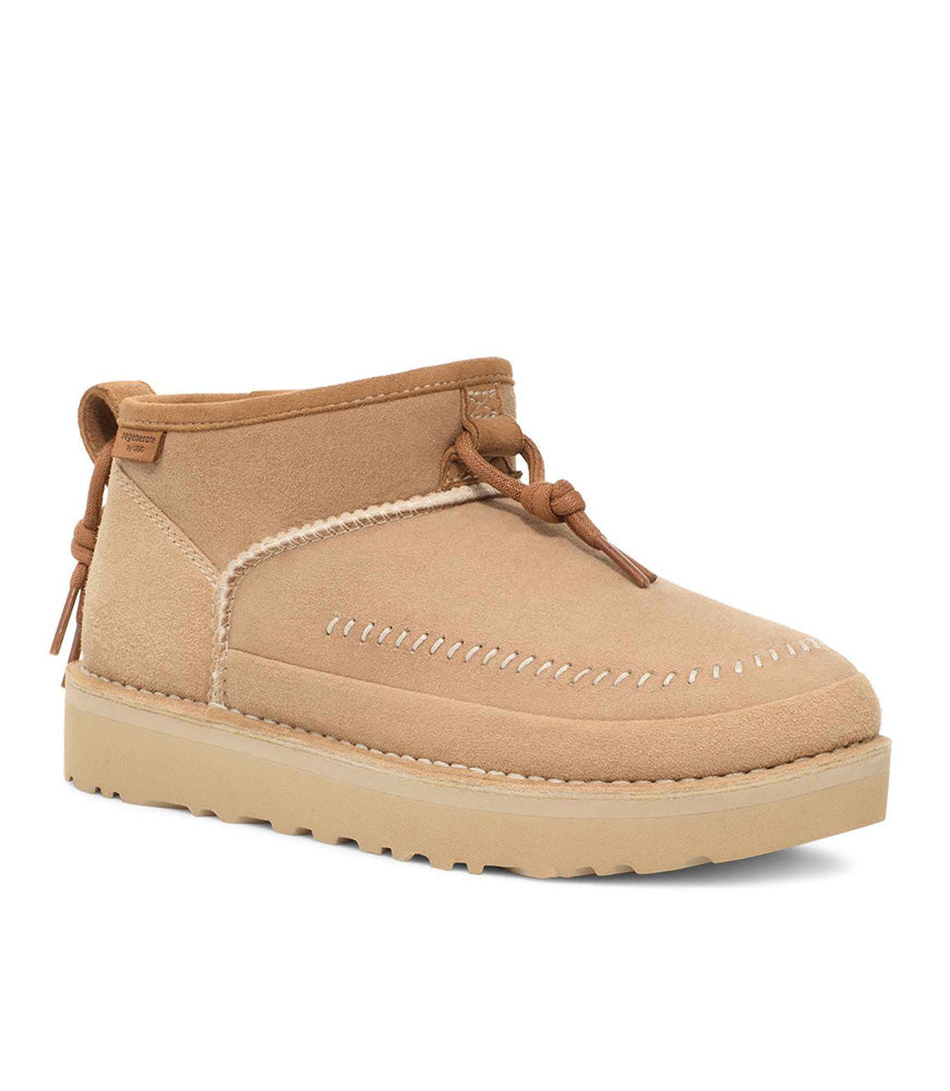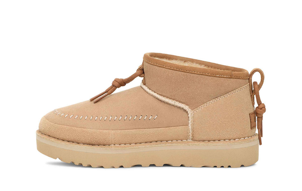 The Ultra Mini Crafted Regenerate blends iconic UGG comfort with a more conscious design—featuring premium suede sourced from farms practicing regenerative agriculture, cozy wool lining, and signature stitching for timeless, eco-minded style.