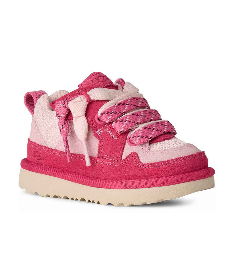 You are sure to love this pink bloom color Lo Lowmel sneaker for your toddler . Featuring the bright pink color on the bottom and the light pink color on the top and two colors of laces. They are perfect for all your toddler's casual looks.