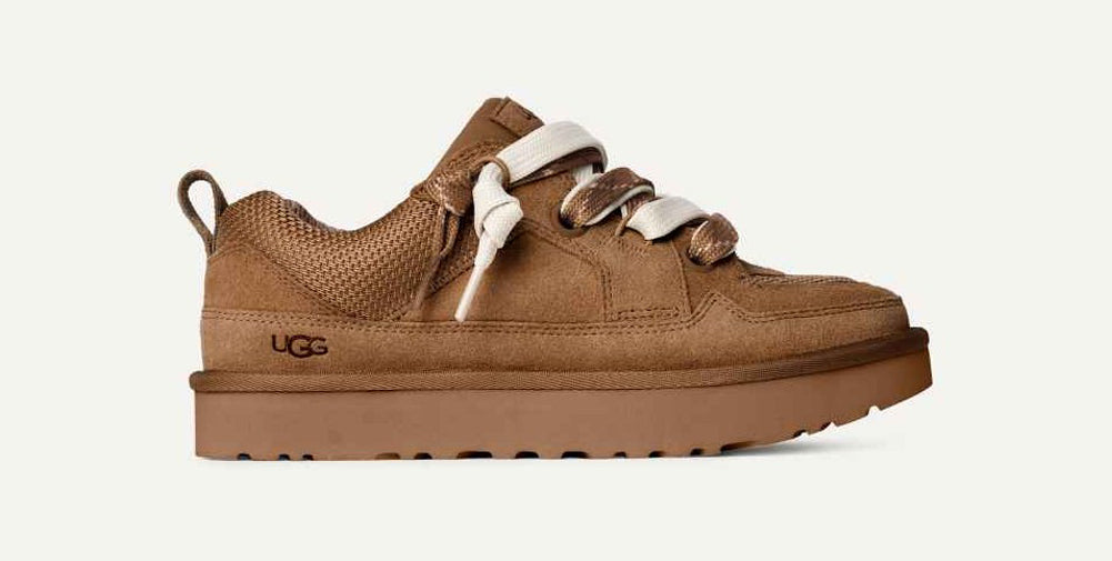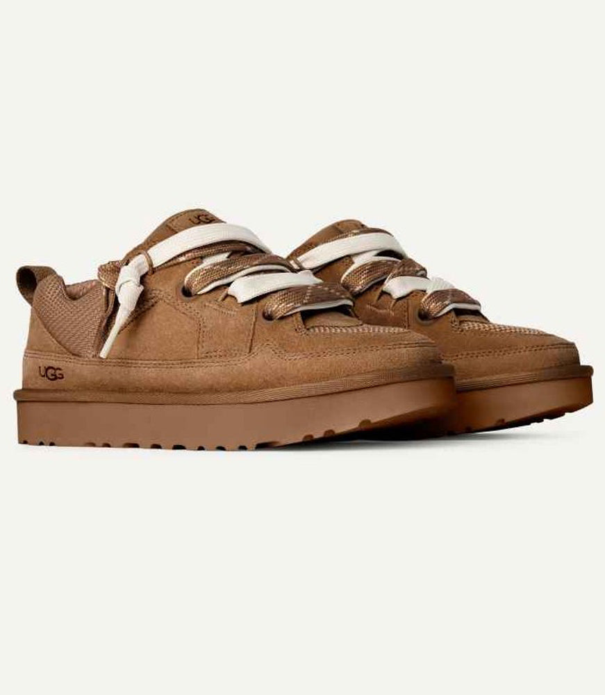 These chestnut UGG low-top sneakers blend sporty style with cozy comfort. Featuring plush suede, dual-tone oversized laces, and a chunky platform sole, they're perfect for adding a bold, laid-back twist to your streetwear look.