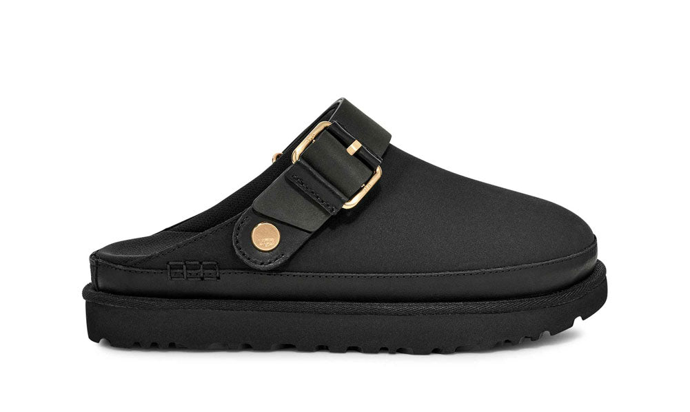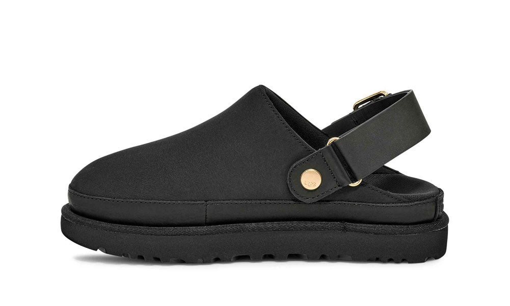 Combining refined craftsmanship with everyday functionality, this women's UGG clog features premium leather, an adjustable buckled backstrap for a secure fit, and a cushioned sole with durable traction. It is perfect for elevated off-duty style and all-day comfort.