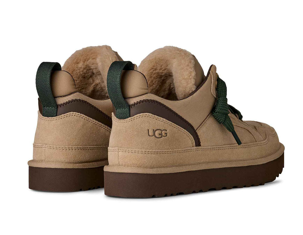 Blending rugged design with everyday comfort, this UGG platform sneaker features a mix of soft suede and durable textile panels, bold contrast laces, and a cushioned elevated sole for all-day support. Cozy lining adds warmth, while the sturdy silhouette makes it perfect for casual wear, cooler days, and effortless off-duty style.