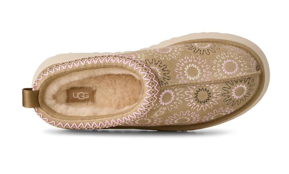Make a statement in comfort with this UGG platform clog, crafted from soft suede and finished with playful embroidered floral details and signature contrast stitching. The cushioned platform sole delivers all-day support with a trendy lift, making this UGG an easy slip-on choice for cozy days, casual outings, and effortless everyday style.