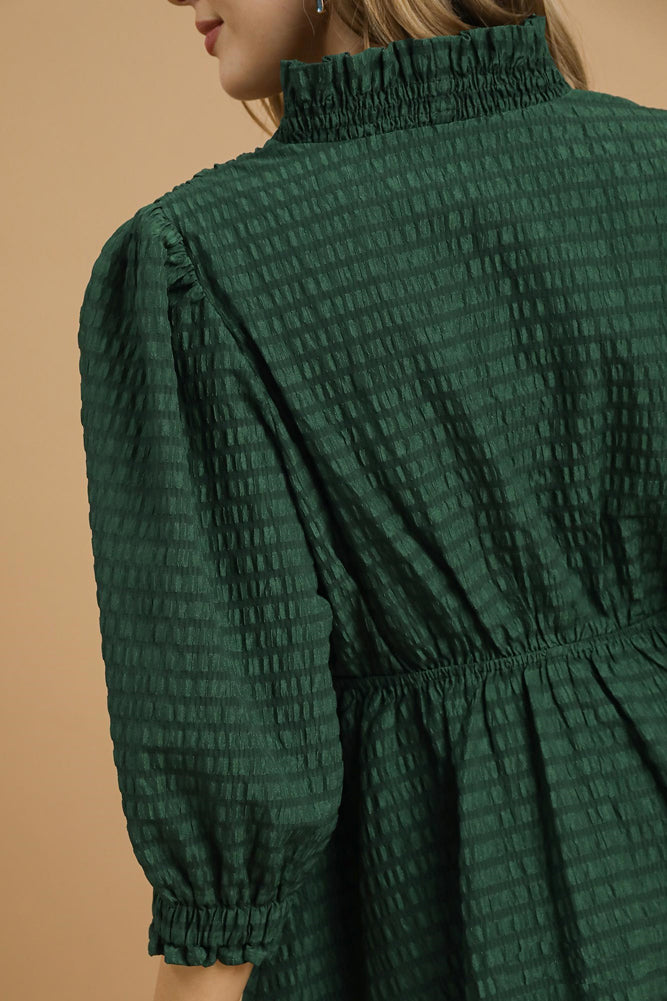 Ruffle Trim Textured Babydoll Dress in Palm Green by Umgee