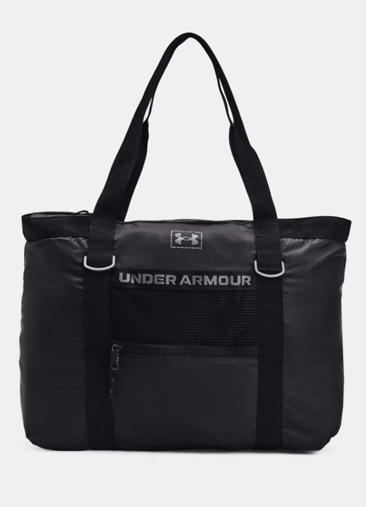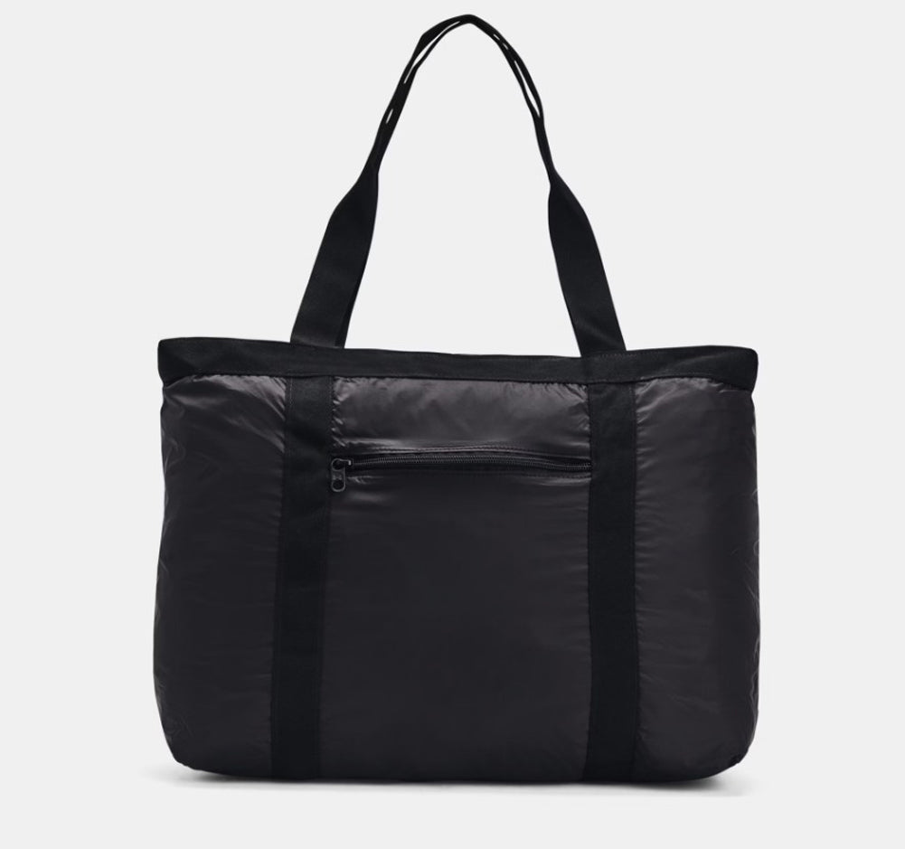 The Under Armour Studio Packable Tote blends function with sleek utility. Lightweight yet roomy, it features dual carry handles, mesh and zip compartments for essentials, and folds up for on-the-go convenience—perfect for the gym, errands, or travel days.