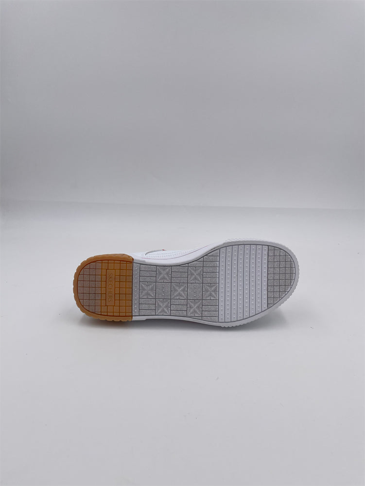 Step up your streetwear game with these classic white Skechers sneakers featuring sleek red accents, textured gum sole detail, and modern stitching for a clean, sporty vibe. Perfect for all-day comfort and versatile style, these kicks are a must-have in every casual wardrobe.