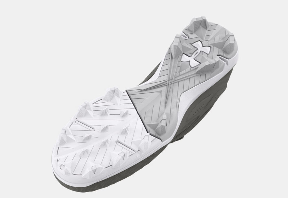 Dominate the field in these sleek grey Under Armour cleats, engineered with a zigzag-textured upper, lightweight structure, and molded studs for explosive traction. Whether you're sprinting or pivoting, performance meets precision in every step.