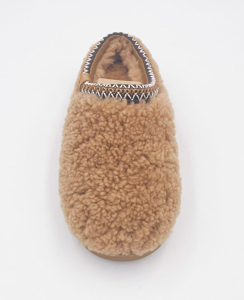 Cozy shearling clog slipper with a plush upper, cushioned footbed, and durable sole. Perfect for lounging at home or styling with casual sets for warm, relaxed comfort.