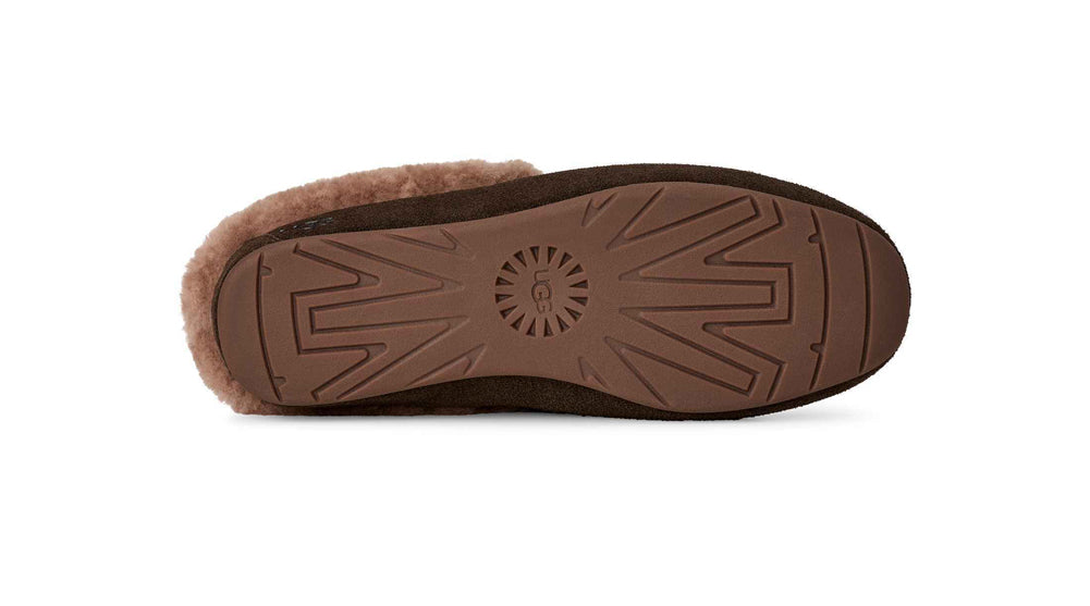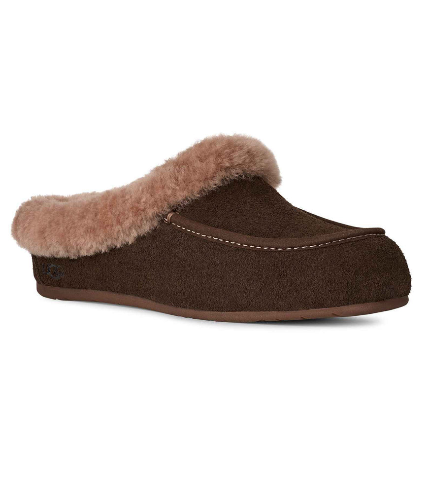 These UGG slippers feature rich brown suede with plush shearling trim, offering cozy warmth, cushioned comfort, and an easy slip on design for all day comfort!