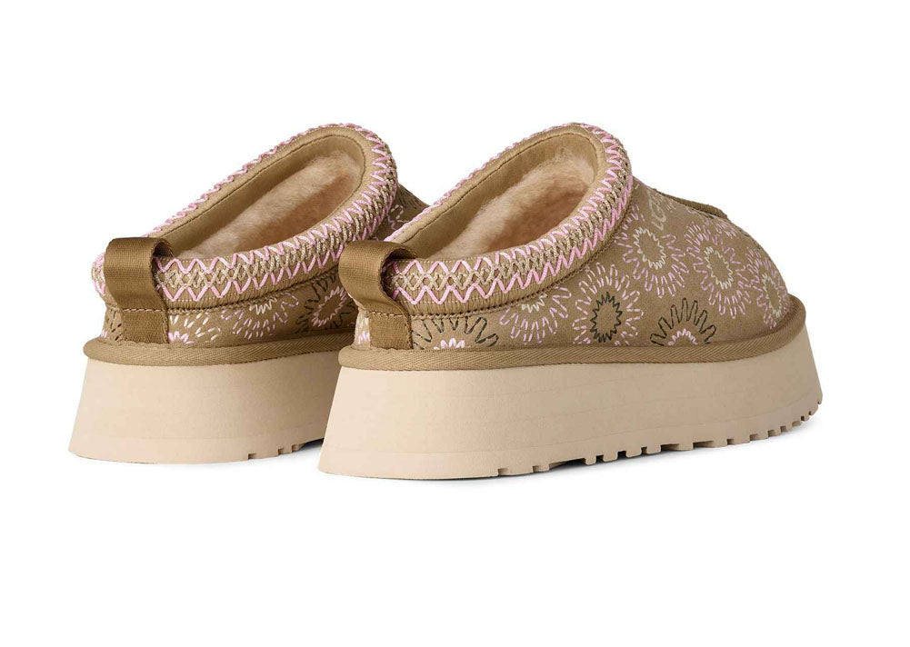 Make a statement in comfort with this UGG platform clog, crafted from soft suede and finished with playful embroidered floral details and signature contrast stitching. The cushioned platform sole delivers all-day support with a trendy lift, making this UGG an easy slip-on choice for cozy days, casual outings, and effortless everyday style.