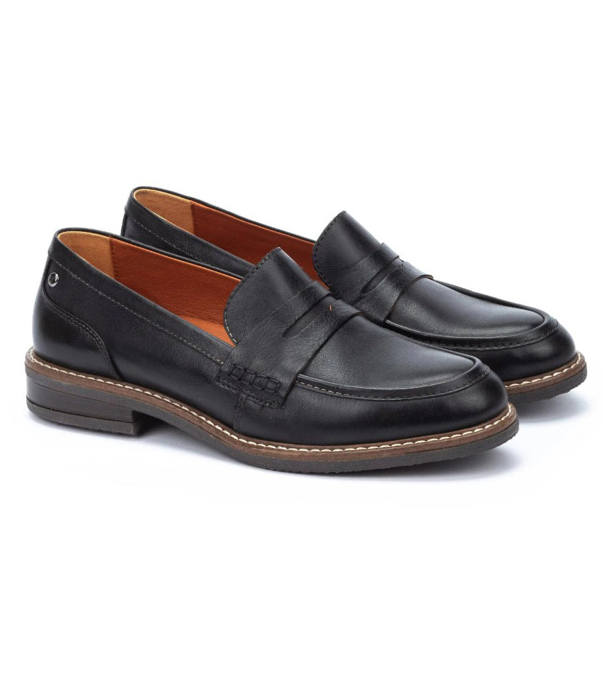 Refined and timeless, these black leather loafers feature a sleek penny strap design, hand-stitched details, and a classic low heel. Perfect for both work and casual wear, they deliver all-day comfort while adding a polished finish to any outfit.