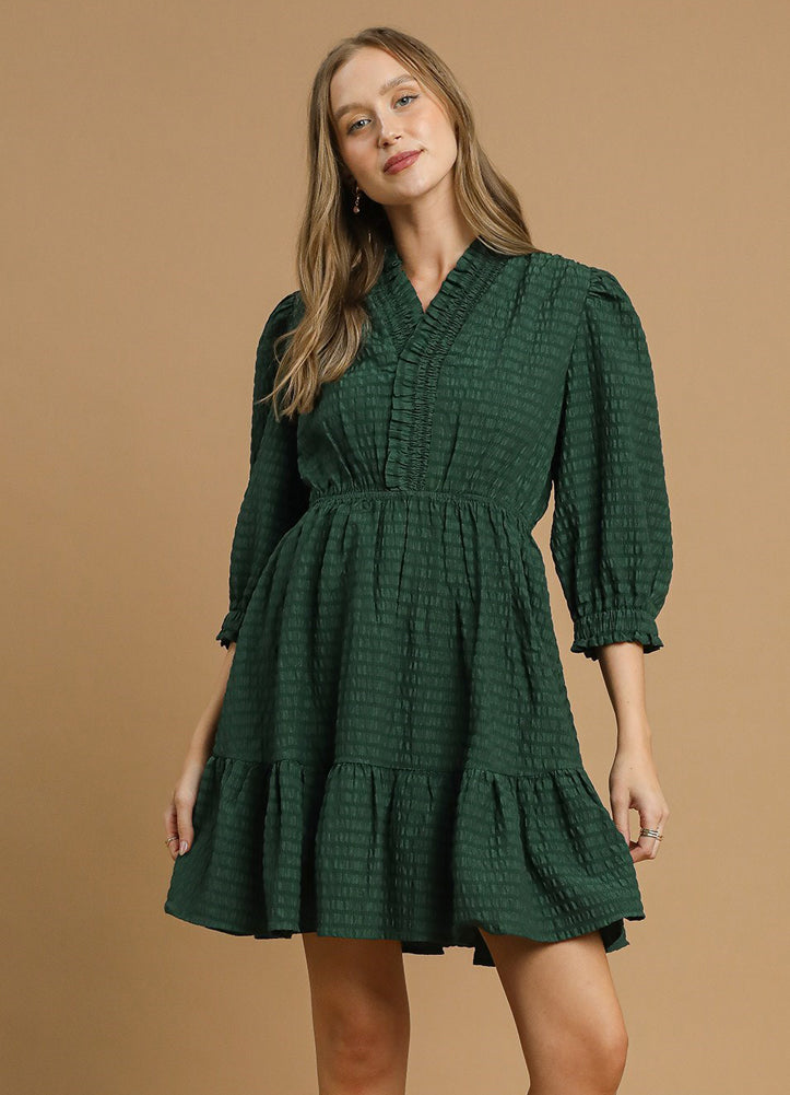 Ruffle Trim Textured Babydoll Dress in Palm Green by Umgee