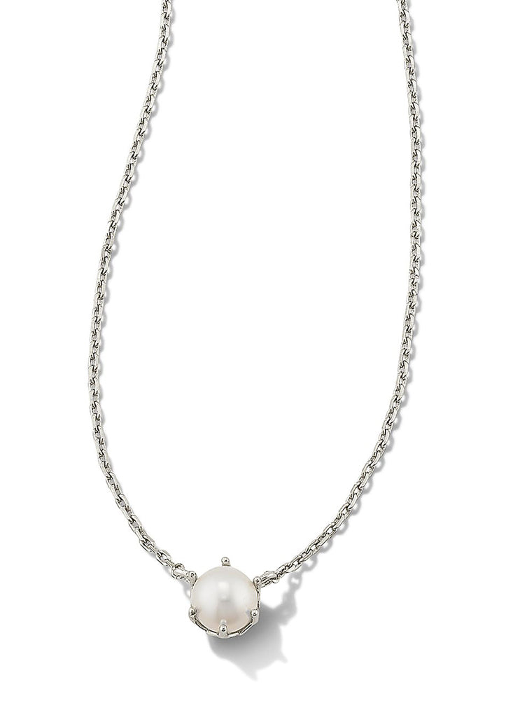 Elevate your everyday look with the timeless elegance of this Kendra Scott necklace. Featuring a single luminous pearl nestled in a delicate silver setting, it brings a modern touch to a classic design—perfect for effortless sophistication.