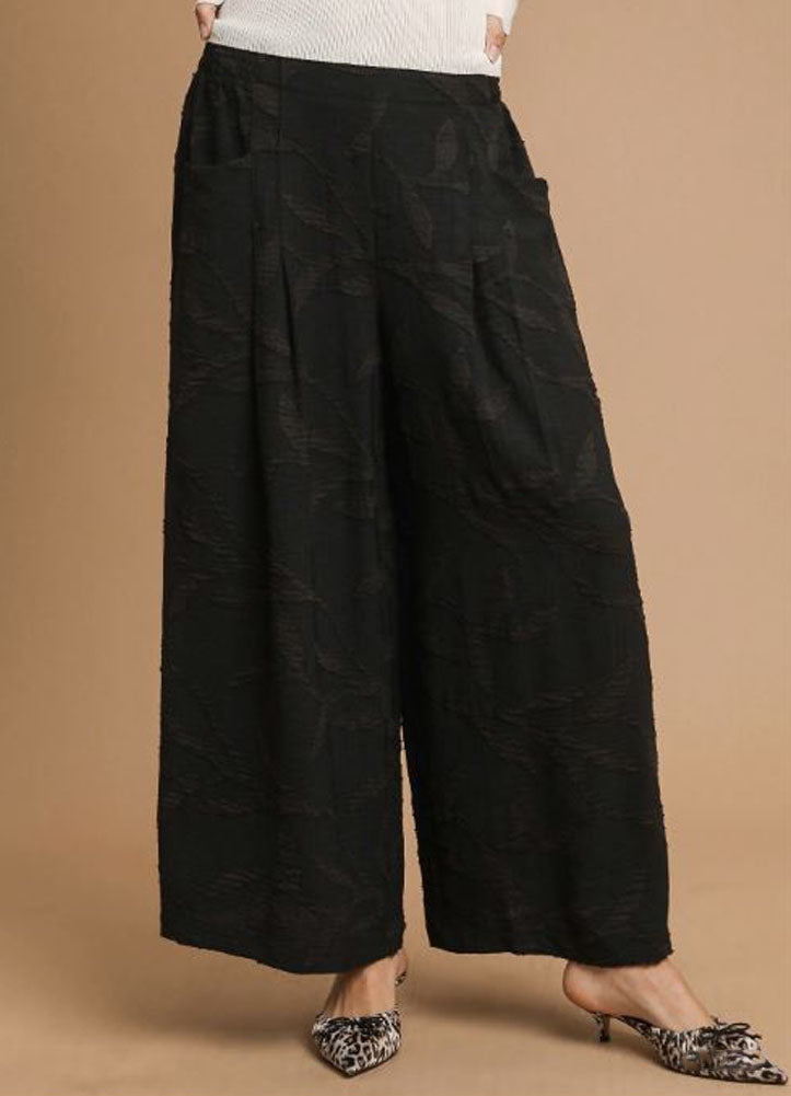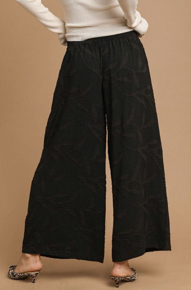 Jacquard Wide Leg Pants in Black by Umgee