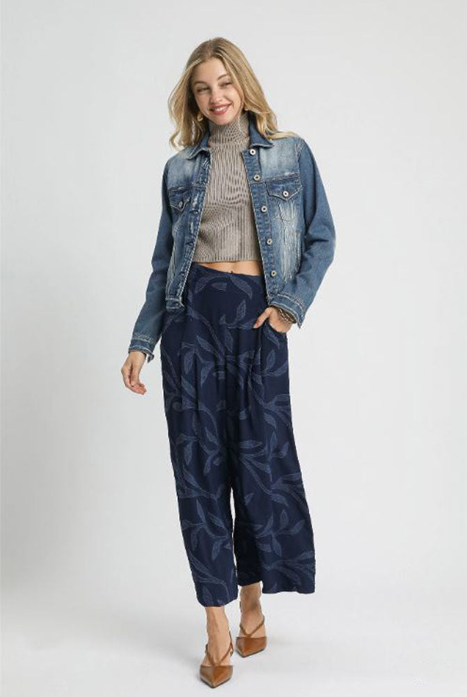 Jacquard Wide Leg Pants in Navy by Umgee