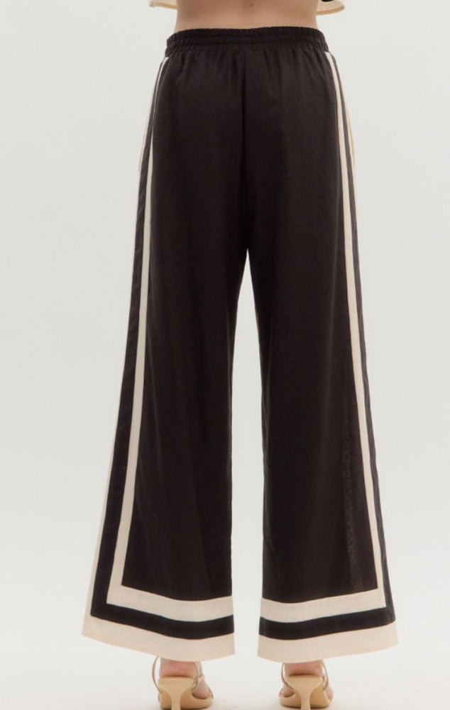 Solid HW Wide Leg Pants with Contrast Border in Black by Entro