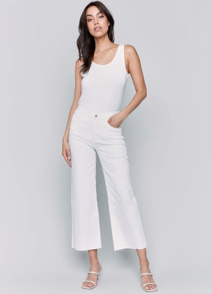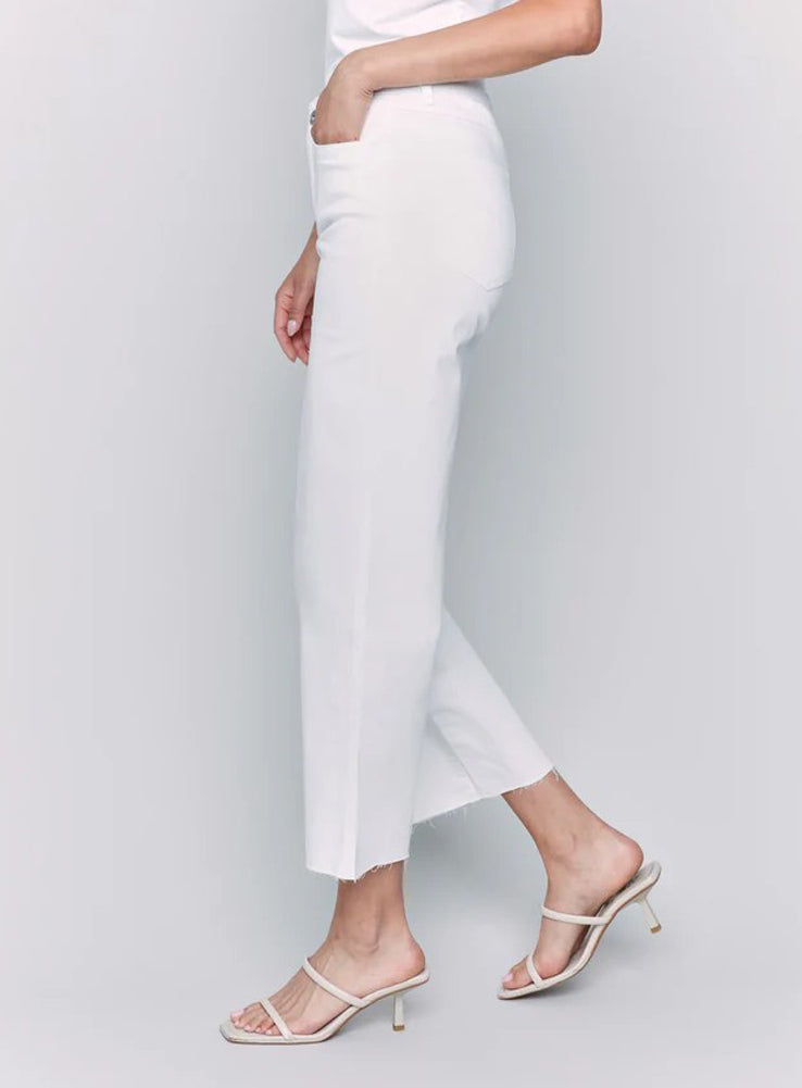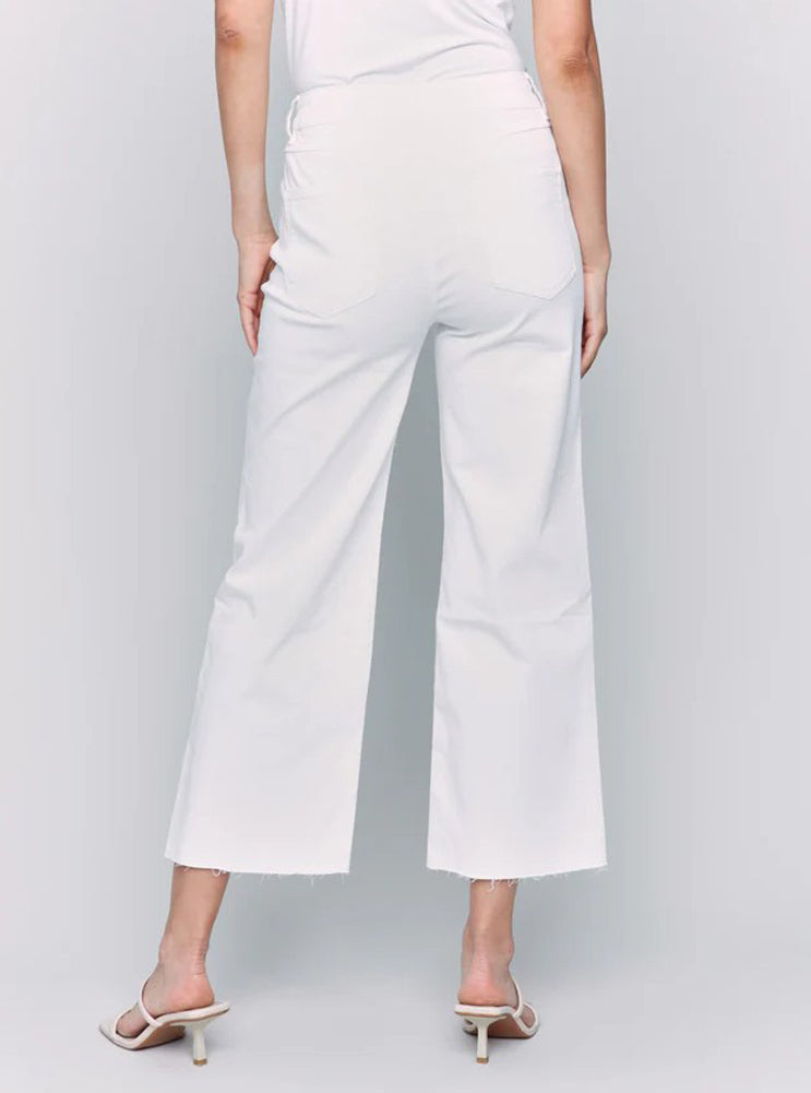 Wide Leg Raw Edge Pant in White by Charlie B